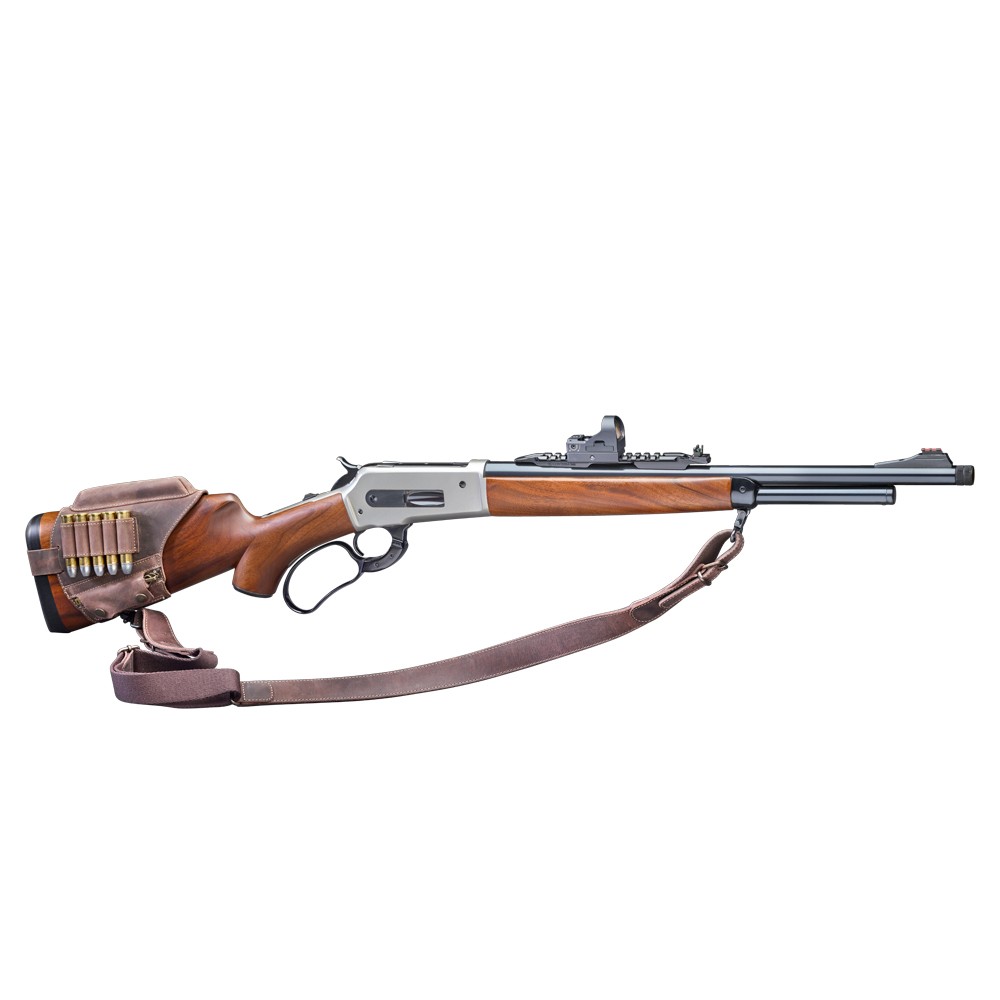 Classic rifle model, aesthetically refined and with a rich eqipment. The interchangeable loop loading lever, stock in selected walnut, protected by the special Silicon Grip film and action coated with Cerakote finish.